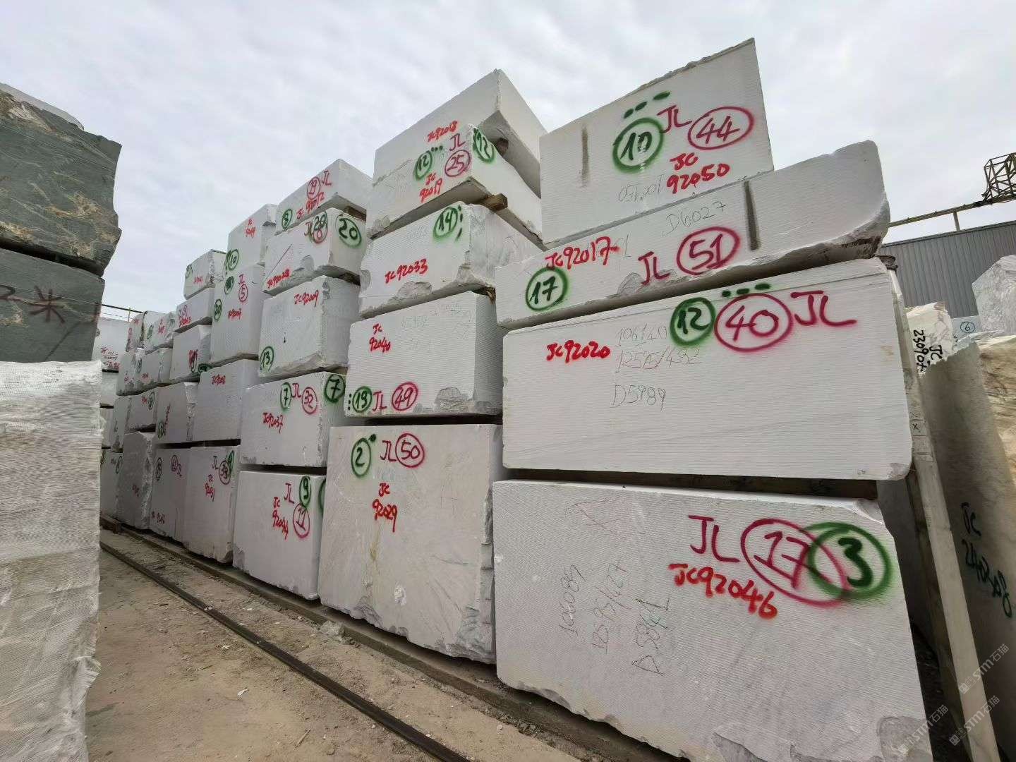 大花白、魚肚金、寶格麗、卡地亞白,細(xì)紋雪花白(大量荒料批發(fā))、